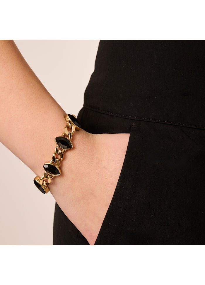 ZELKO is our version of the luxurious chain bracelet, with its solid steel chain and the inserted five navette shaped faceted crystals that are just super impactful. The length is 17 cm + extension chain. Wear it alone, or mixed with other bracelets. Here shown in gold tone finish and a beautiful black crystals. Designed in Denmark and free from cadmium, nickel and lead.